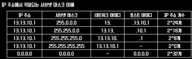 IP 주소에 대한 네트워크 아이디와 호스트 아이디를 구분하기 위해서 사용된다.