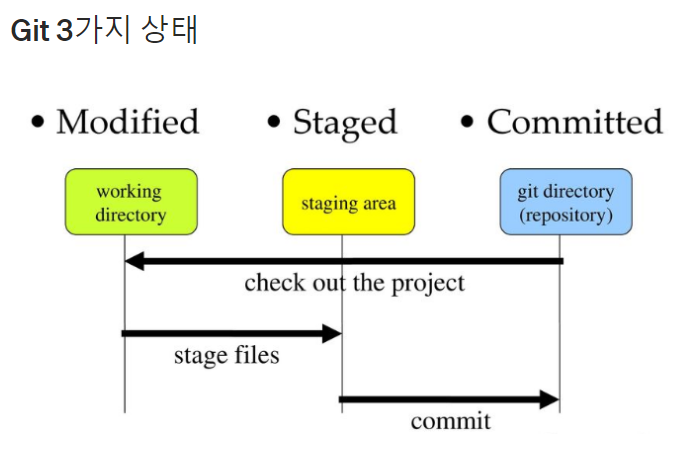Git에서 관리하는 파일들은 modifed, staged, commited 이라는 3가지의 상태를 가진다.