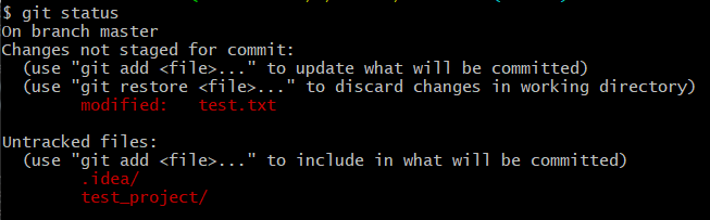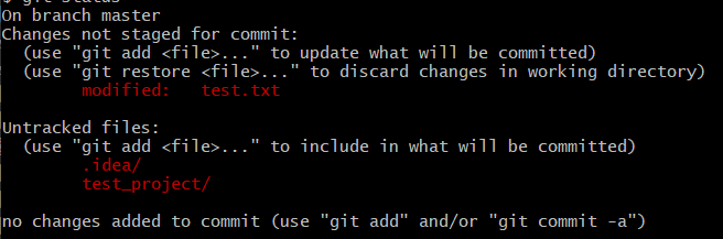 위 화면에서 git status 명령어 결과로 Changes to be commited: 를 확인할 수 있다.