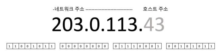 203.0.113.43 (네트워크주소: 203, 호스트주소 : 43)
